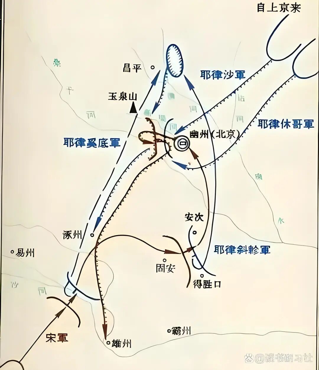 之后,辽军名将耶律休哥率精锐马队星夜驰援,与城内守军里通外国。两军在北京城西的高粱河(今北京西直门外)地区伸开决战。