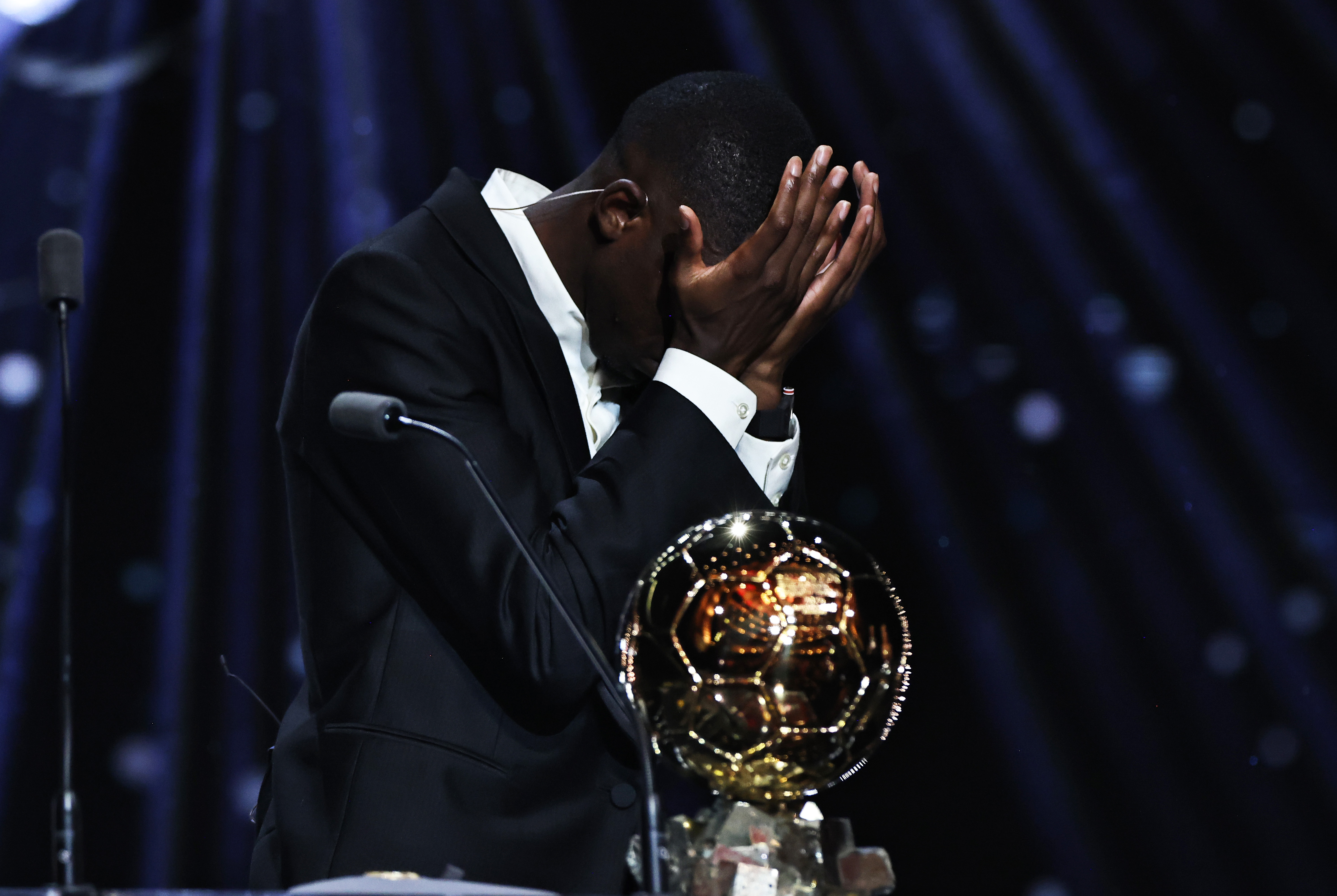 新华社巴黎9月22日电(记者王松宇)2025年金球奖受奖典礼22日晚在巴黎夏特莱剧院举行,巴黎圣日耳曼球员登贝莱初度荣获男足金球奖,在聚光灯下泪洒领奖台。